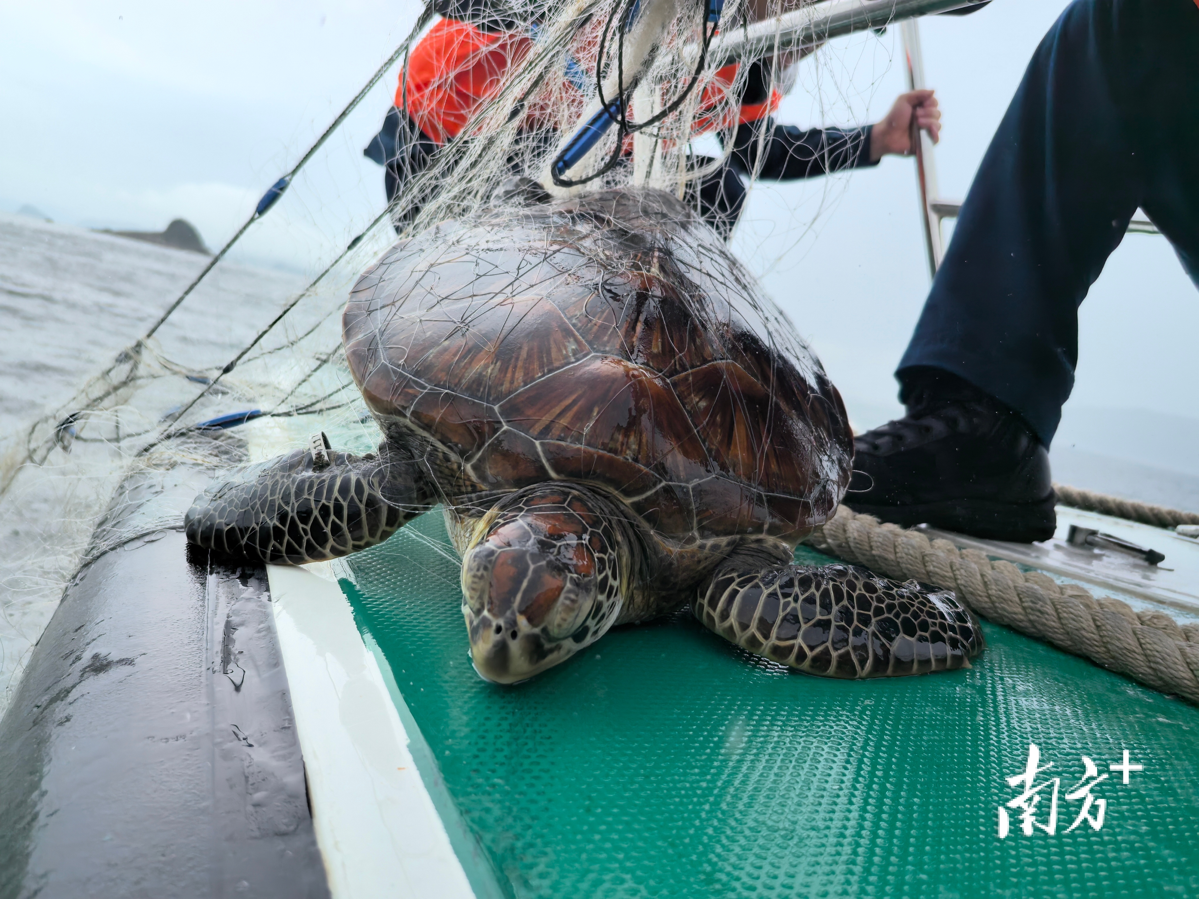国家一级保护动物命悬渔网!深圳海警勇救洄游300海里绿海龟